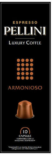 ###Pellini LUXURY ARMONIOSO kiváló minőségű őrölt kávékapszulában (10db 5g-os egyadagos kávékapszula védőgázas csomagolásban. 1 karton = 50g )Bársonyosan testes karakterű őrölt kávé, pörkölt magvak és aszalt gyümölcsök aroma- és illatjegyeivel, harmonikus és hosszan lecsengő ízvilággal. A Pellini törekszik arra, hogy mindig hibátlan ízű és állandó minőség
