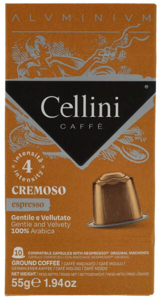 A Cremoso ellenállhatatlan illatával és friss gyümölcsös jegyeivel meggyőzi Önt. A Cellini kávékapszulák kompatibilisek az eredeti Nespresso®* gépekkel.