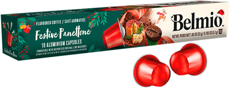 A karácsonyi időszakról a legtöbb embernek ételek és édességek sokasága jut eszébe. Néhányak számára a szezon kedvenc édessége az olasz panettone, és ennek örömére a Belmio panettone ízű kávét készített. Az Arabica és Robusta kávészemek keverékét mazsolás és kandírozott gyümölcsös jegyekkel ötvözték, így ez a kávé egyenesen egy hagyományos olasz karácso