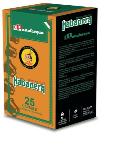 Nespresso kompatibilis kapszula Passalacqua Habanera Nespresso kompatibilis kapszula A Passalacqua kávépörkölő története 1948-ban kezdődött. A családi vállalkozás kezdetben rendkívül kisméretű volt, de az elkövetkezendő évek során jelentős fejlődésen ment keresztül. Nápoly közelében, Casavatore városában található új üzemük alapterülete mintegy 5000 négyzetméte