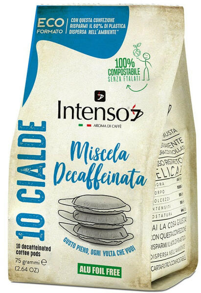 44 mm átmérőjű E. S. E. pod (kávépárna) Testes, karakteres, erőteljes és krémes kávé izgalmas és gazdag aromákkal - teljes értékű kávé élmény legfeljebb 0,1% koffein tartalommal. Komposztálható papír podok környezetkímélő 10 db-os ECO csomagolásban (nem egyenként csomagolt), amely alumínium fólia felhasználása nélkül készül. Csomagolás a képtől eltérhet S