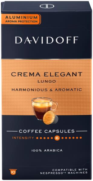 Őrölt, pörkölt kávé. A davidoff crema elegant meghívja önt, hogy merüljön el a harmonikus lungo-ban, amelyet a tetején a gazdag crema koronáz meg. Ez az egyedülálló, 100 % arabica kávé rendkívül aromás és telt ízével elbűvöli az igényes kávékedvelők ízlését. Karakteres, mégis enyhén testes ízjegyekkel rendelkező davidoff crema elegant a minden napi kávé élvez