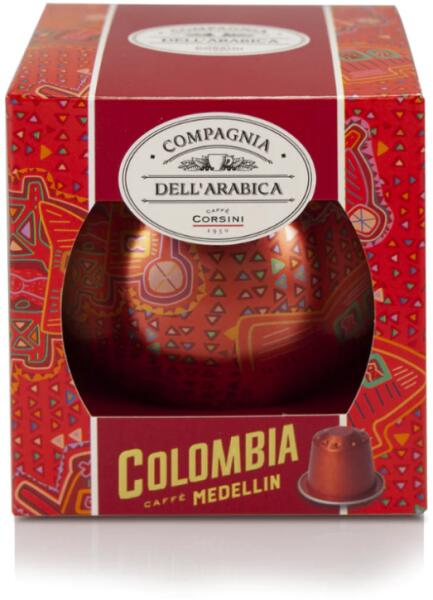 Igazi karácsonyi meglepi a gömbön belül! A dísz tartalma 4 db kiváló minőségű Colombia 100% Arabica kávékapszulaCOLOMBIA - MEDELLIN SUPREMOA Compagnia Dell'Arabica Caffé Colombia Medellin Supremo igazi kolumbiai kávéélményt kínál, mely a világ második legnagyobb kávéexportőreként ismert Kolumbia gazdag kávétermelési hagyományait képviseli. A mintegy 1 millió hektáro