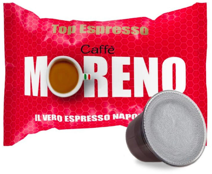 A Caffè Moreno Top Espresso egy kiváló minőségű kávékapszula , amely tökéletesen kompatibilis a Nespresso kávégépekkel. Ez a kávékapszula gondosan válogatott Arabica és Robusta kávészemek exkluzív keverékét tartalmazza, amelyek a világ legjobb kávétermesztő régióiból származnak. A közepes pörkölésű Top Espresso kávékeverék kiemeli a kávé természetes aromái