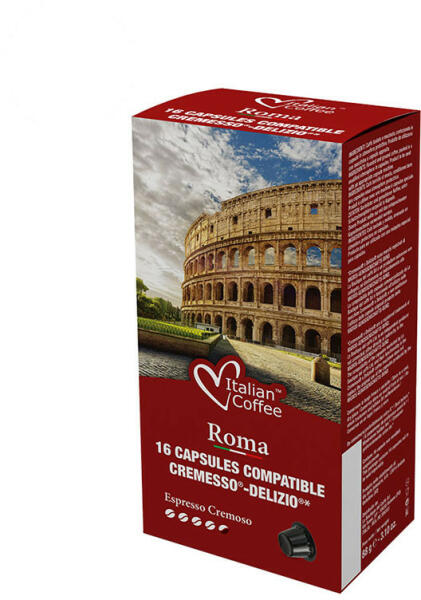 Doboz tartalma: 16 db kapszula Testes és aromás kávé 70% robusta és 30% arabica Csokoládé utóíz Intenzitás 9/10 Test 10/10 Erő 10/10 Kompatibilis a Cremesso® és Delizio® kávéfőzőkkel 5,5 gramm őrölt kávé kapszulánként Igazi eszpresszó, ideális reggelekre Tipikus olasz esspresso Sötét pörkölés A Cremesso ® és a Delizio ® a MIGROS-GENOSSENSCHFTS-BUND tulajdonában l