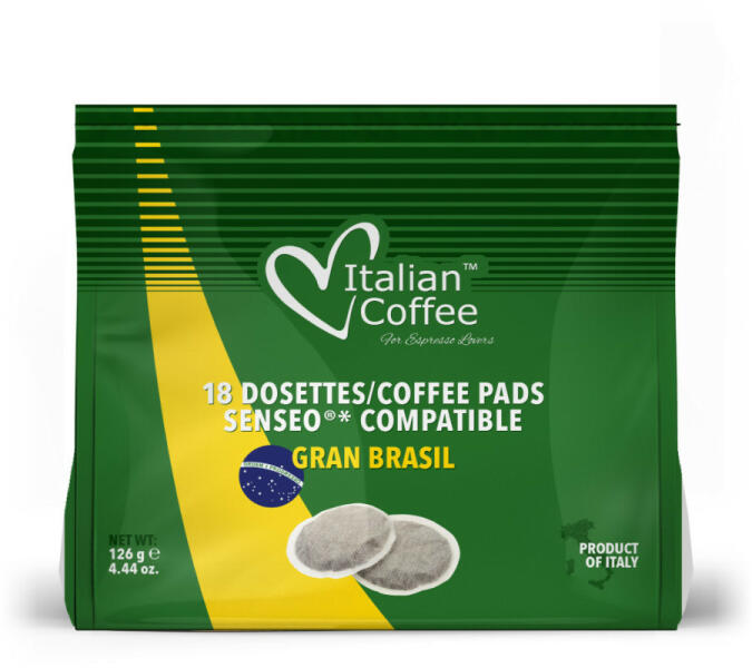 44 mm átmérőjű E. S. E. pod (kávépárna) Egy klasszikus összeállítású, nagyszerű eszpresszó. Diszkréten krémes, a testes ízekben fellelhető a csokoládé és a karamell kiváló összhangja. Olasz eszpresszó kávé kedvelőinek javasoljuk. 50% Arabica - 50% Robusta kávé tartalmú E. S. E. pod, komposztálható csomagolásban. Nettó tömeg: 7g Doboz: 150 db Származási hely: O