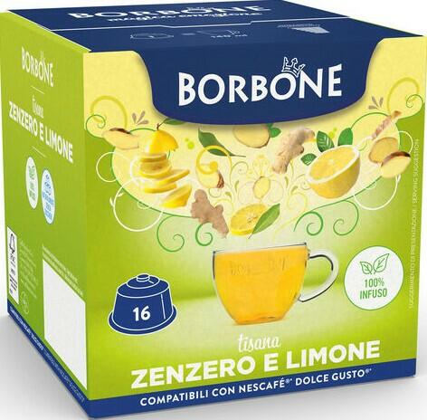 Caffé Borbone Tea citrommal Dolce Gusto kapszula 16db A csatlakozástól a gyömbér gyökér és a citrom hihetetlenül energizáló gyógyteát hoz létre. Összetétel: Gyömbér 40%, citrom fű, Édesgyökér, menta 5%, hibiszkusz. Citromhéj 1%, fekete bors. Citromsav. Allergén anyagok: nincs megadva. Javasolt adagolás: 140 ml Energiaérték 140 ml-re: Energia 3 kJ/1 kcal. Zsírok 0 g, ebb