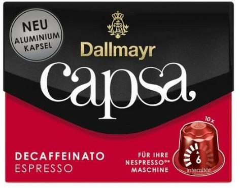 Dallmayr Capsa Espresso Decaffeinato új generációs alumínium Nespresso kompatibilis kapszulába zárva. A Dallmayr Capsa Espresso Decaffeinato koffeinmentes kávé, kifinomult prémium 100% Arabica keverék hagyományos eszpresszó pörköléssel. A sült mogyoró, a cédrus és a bors aromáival. Tökéletes ízharmónia koffein nélkül. A kávébabból speciális eljárással kivonják a ko