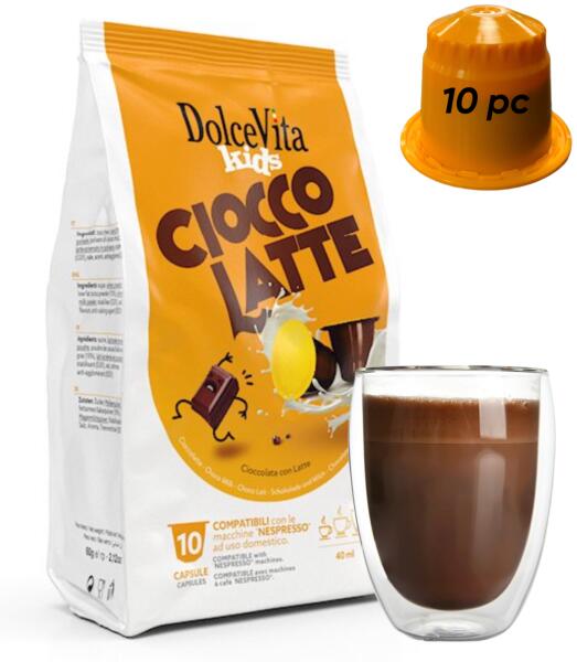 Nespresso kapszula Italfoods Dolce Vita CIOCCO LATTE csokoládé ital tejjel 10 db Instant tejital tejcsokoládé ízzel. Ideális reggelire a kicsik számára. A tejcsokoládé szerelmeseinek. Gluténmentes termék.