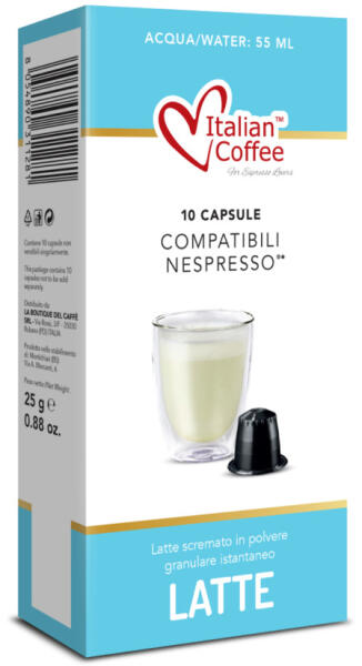 Sovány tej kapszula Nespresso kompatibilis. Hozzávalók : Sovány tejpor. Nyomokban szóját tartalmazhat.