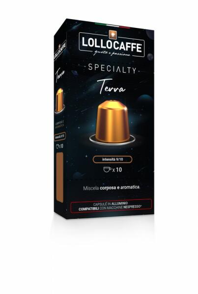 Lollo caffé Terra Espresso alumínium kapszula NESPRESSO®-hoz 10 db Kiegyensúlyozott és finom keverék, az otthoni kávé és a bárból származó kávé tökéletes kombinációja. A keverék harmóniája kerek és telt ízt garantál. Kávé kiegyensúlyozott aromás profillal, amely az olasz hagyományt idézi.