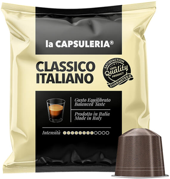 Intenzív pörkölt kávé, telt, erős ízzel Erős, intenzív és tartós ízű kávé. Ezt a kávét úgy pörkölik és őrlik, hogy sűrű, krémes, pörkölt és diós jegyekkel rendelkező csésze eredményt kapjanak. Nespresso-kompatibilis kávékapszula la Capsuleria rendszerhez.