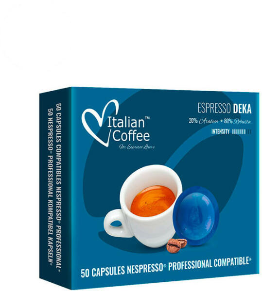 Kiváló Robustát tartalmazó keverékből készült koffeinmentes kávé, így erősebb, krémesebb és intenzívebb kávét kapunk. Ez a koffeinmentes kávé azoknak ajánlott, akik nem ihatnak normál kávét. 90% Arabica - 10% Robusta Intenzitás: 8/10 Nespresso Professional eszpresszógépekkel kompatibilis kapszula .
