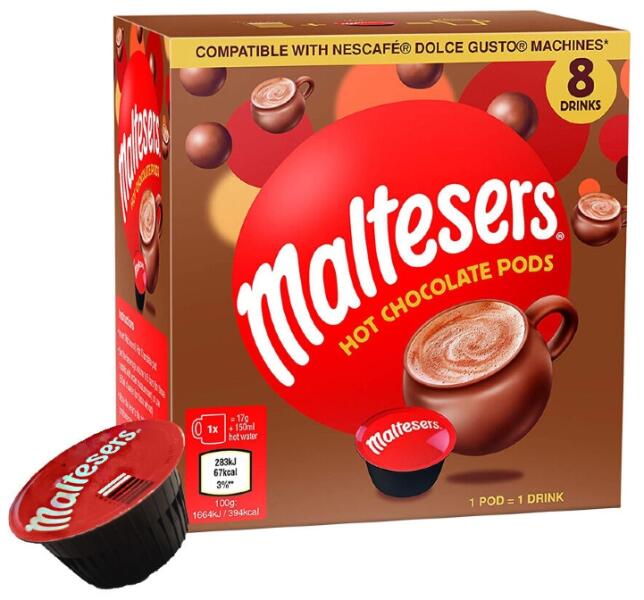 A Dolce Gusto kompatibilis Maltesers® kapszula egy egyedi kényeztető csokoládé ital minden korosztály számára. Ezeknek a kapszuláknak köszönhetően most egy csészében élvezheti a híres csokoládés édességet! A kapszulák a csokoládé és a keksz ízeit egyesítik egy finom melegítő italban. Legyen otthon barista, és készítse el ezt az ízletes csokoládé italt családjána