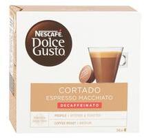 Nescafé Dolce Gusto Cortado Espresso Macchiato, koffeinmentes kávékapszula. 16 db/16 csésze. Súly: 99,2 g / kapszula. Összetevők: Teljes tejpor 62,7%; Koffeinmentes azonnal oldódó kávé 35,5%; Stabilizátorok (kálium-foszfátok, nátrium-citrátok); Emulgeálószer ( szója lecitin).