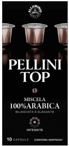 ###PelliniTOP kiváló minőségű őrölt kávé Alumínium kapszulában (10db 5,5g-os egyadagos kávékapszula védőgázas csomagolásban. Nettó tömeg: 1 karton = 55g )Elegáns és választékos aromájú100% Arabica őrölt kávé virágos, csokoládés és pirított magvas jegyekkel. Kifinomult testesség intenzív ízvilággal párosulva. A Pellini törekszik arra, hogy mindig hibátlan í