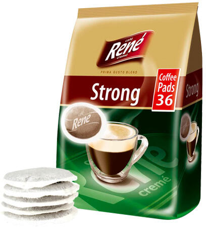 A Café René-nak 3 mindennapi kávéja van a Senseo számára, amelyek ízben és karakterben megoszlanak, de különböző erősségekkel rendelkeznek, a gyengétől a erősig. A Strong a Café René erős választéka, és azok számára készült, akik szeretik a jó erős kávét. Itt egy erőteljes kávét kapsz, ami lökést ad és felkészít a napi teendőkre. Ezek a párnák sötéten p