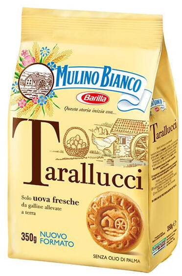 Keksz MULINO BIANCO tarallucci 350g A Mulino Bianco Tarallucci kekszek a tradicionális olasz édességek közé tartoznak, amelyeket friss tojásból és kiváló minőségű alapanyagokból készítenek. Ezek a könnyű, omlós tésztájú kekszek ideálisak egy finom reggelihez, különösen kávéval vagy tejjel fogyasztva. A Tarallucci kekszek tökéletesen megőrzik ropogós textúrájukat m