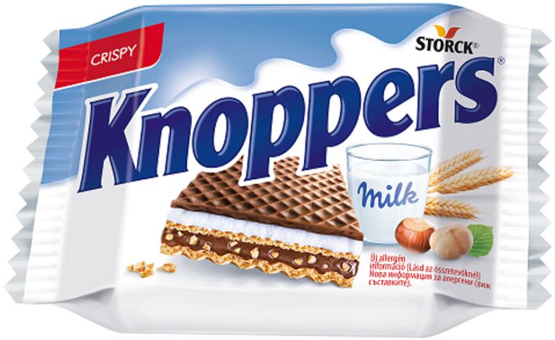 Knoppers nápolyi 25g Hivatalos magyarországi forgalmazótól. Leírás: Töltött ostya kakaós tejbevonóval félig mártva Összetevők: Cukor, Növényi zsírok (pálma, shea), Sovány TEJPOR* (13,1%), BÚZALISZT (12,7%), MOGYORÓ (9,2%), Teljes kiőrlésű BÚZALISZT (7%), VAJZSÍR* (2,7%), Kakaópor, Zsírszegény kakaópor, Emulgeálószer: SZÓJALECITIN, TEJSZÍNPOR* (0,4%), Étkezesi só