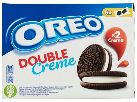 Keksz OREO Dupla krémes 170g Vanília ízű töltelékkel (29%) töltött kakaós keksz.