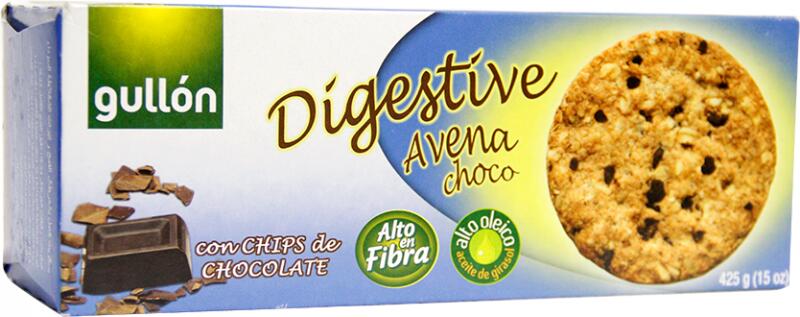 Zabpelyhes korpás keksz étcsokoládé darabokkal. 425 g-os zabpelyhes korpás keksz; Gullón termék a digestív kekszek kedvelőinek.