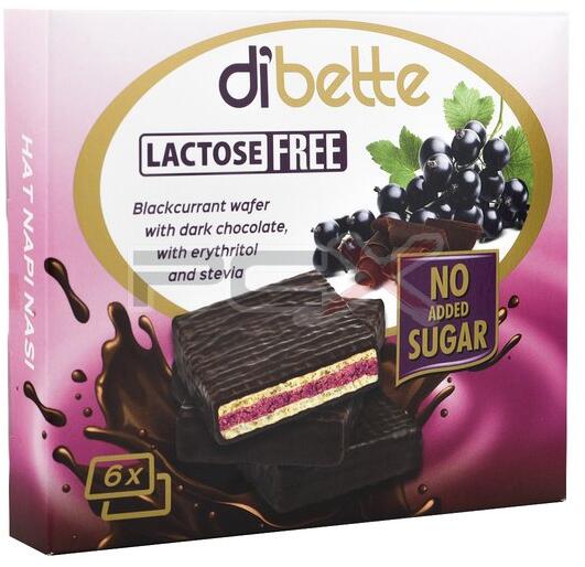 Diabette NAS LAKTÓZMENTES ribizlis krémmel töltött OSTYALAPOCSKÁK étcsokoládéval mártva, édesítőszerrelÖsszetevők:, étcsokoládé 40% (kakaómassza, édesítőszerek:eritrit, szteviol glikozidok (0,02%), kakaóvaj, emulgeálószer: napraforgó lecitin, aroma), feketeribizlis krém 33% (édesítőszerek: eritrit, szteviol glikozidok (0,01%), részben hidrogénezett növényi zsír (p