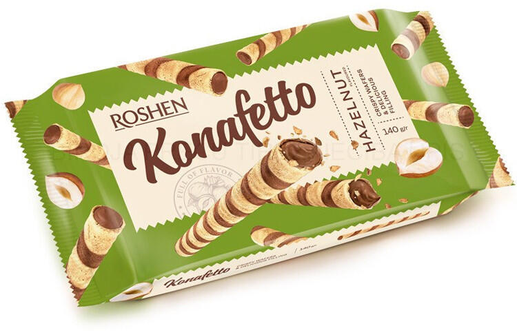 Vásárold meg most szuper áron termékünket és válogass több mint 5000 féle között! A kamraellato. hu oldalon nincs kockázat, ugyanis mindent valós magyarországi készlet ről szállítunk ki. Megnevezés: Roshen Konafetto mogyoró ízesítésű krémmel töltött ostyarúd 140 g Összetevők: Cukor, Növényi zsírok (pálma, napraforgó), BÚZAliszt, TEJsavópor, Zsírszegény kakaó