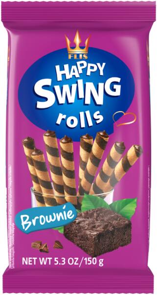 Happy Swing ostyarúd brownie 150g Hivatalos magyarországi forgalmazótól. Leírás: Brownie ízű krémmel (62,5%) töltött ostyarúd Összetevők: cukor, búzaliszt, pálmazsír, csökkentett zsírtartalmú kakaópor (7,7%), laktóz (tejből), tejsavópor (tejből), sovány tejpor, aromák, glükóz, színezőanyag (karamell), emulgeálószer: lecitin (repce), só. Allergén: tejpor, tejsavó