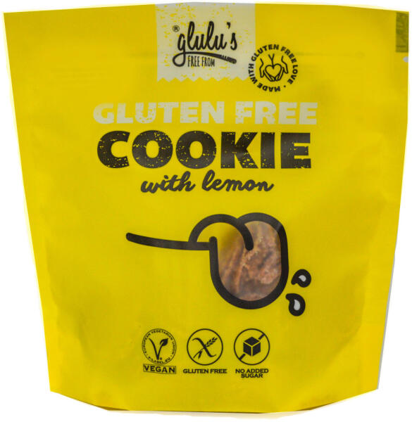 Glulu freefrom cukormentes citromos keksz 100 g Glutén-, laktóz-, tej-, tojás-, szója-, cukormentes! Kellemes citromos ízű, édes snack különlegesség. Összetevők: víz, kókuszolaj, barna rizsliszt, gluténmentes zabliszt, édesítőszer (eritritol), barna rizsdara, bambuszrost, őrölt narancshéj, térfogatnövelőszer (nátrium-hidrogén-karbonát), természetes citrom aroma 0,18% (t