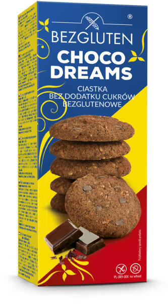 Bezgluten gluténmentes csokis álom hozzáadott cukor nélkül 120 g Bezgluten Gluténmentes csokis álom Összetevők: keményítők (burgonya, kukorica), olajok (kókusz, repce), édesítőszer: maltit; liszt (kukorica, gluténmentes teljes kiőrlésű zab ), csokoládécseppek 9,8% (édesítőszer: maltit; kakaómassza, kakaóvaj, emulgeálószer: lecitinek; aroma), banánpüré, gluténmentes