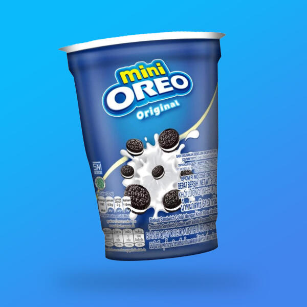 Oreo vaníliás mini töltött kekszek pohárban töltőtömeg: 61,3g Összetevők: Cukor, búza, pálmaolaj, sovány kakaópor 3,6%, búzakeményítő, glükóz-fruktóz szirup, pálmamagolaj, térfogatnövelő (kálium-hidrogén-karbonát, ammónium-hidrogén-karbonát, nátrium-hidrogén-karbonát), só, emulgeálószerek (szójalecitin) aroma (vanillin). Átlagos tápérték 100g-ban Energia 4