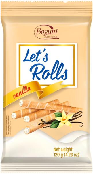 Bogutti Lets Rolls vanília ízű krémmel töltött ostyarúd 120g Hivatalos magyarországi forgalmazótól. Leírás: Vanília ízű krémmel töltött ostyarúd Kiszerelés: 120g