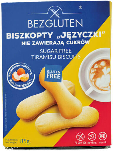 Bezgluten gluténmentes tiramisu keksz 85 g Összetevők: pasztőrözött tojás, keményítő (kukorica, burgonya), cukor, emulgeálószerek: zsírsavak mono és digliceridjei, zsírsavak polioxietilén-szorbitán-monolaurát, bambuszrost, térfogatnövelőszer: ammonium-karbonát, sűrítők: quargumi Tartalmazhat: mandulát, földimogyorót és egyéb dióféléket. Gluténmentes.