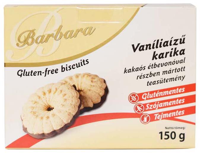 Barbara vaníliaízű karika kakaós étbevonóval részben mártott teasütemény.