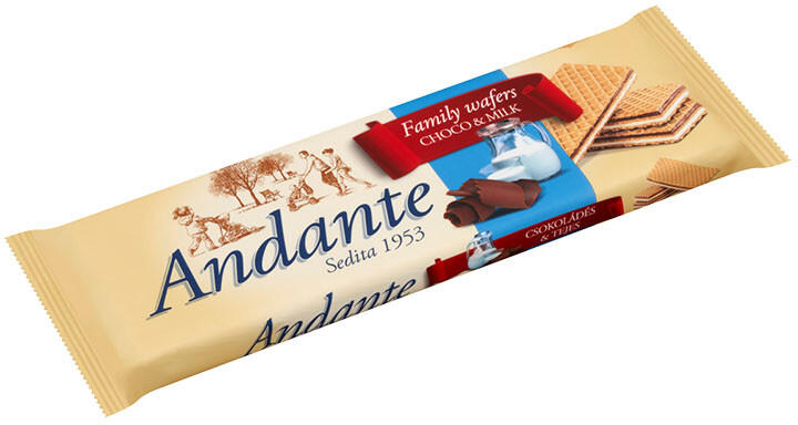 Vásárold meg most szuper áron termékünket és válogass több mint 5000 féle között! A kamraellato. hu oldalon nincs kockázat, ugyanis mindent valós magyarországi készlet ről szállítunk ki. Megnevezés: Andante kakaós-csokoládés és tejes krémmel töltött ostya 130 g Összetevők: BÚZALISZT, Növényi zsírok (pálmazsír, kókuszzsír), Cukor, Sovány TEJPOR 5%, Étkezési SA