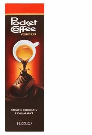 A Pocket Coffee praliné egy különleges csokoládés desszert, amely egyesíti a kiváló minőségű étcsokoládét és az igazi olasz eszpresszókávé gazdag ízét. Minden egyes praliné belsejében egy csepp erős eszpresszó rejlik, amit a roppanós csokoládé réteg foglal magába, tökéletes egyensúlyt teremtve a kesernyés kávé és az édes csokoládé között. A Pocket Coffee ne