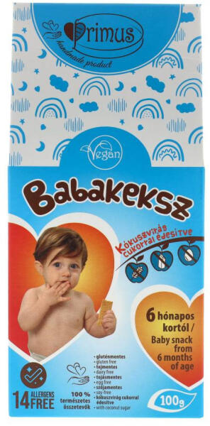 Hat hónapos kortól adható gluténmentes, tejmentes, tojásmentes, szójamentes vegán keksz kizárólag természetes összetevőkből, kókuszvirágcukorral édesítve.