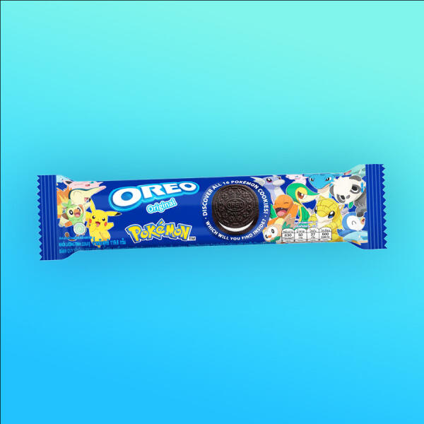 Oreo Original vanília krémes Pokémon keksz. töltőtömeg: 119,6g Összetevők: Búzaliszt, cukor, nem hidrogénezett növényi olaj (pálma), antioxidáns (E319), kakaópor, fruktózszirup, kelesztő (E500ii, E503i), kukoricakeményítő, só, emulgeálószer (E322, szója), vanília aroma. Búzát és szóját tartalmaz. Tartalmazhat tejet, diót. Átlagos tápérték 100g-ban Energia 486kcal