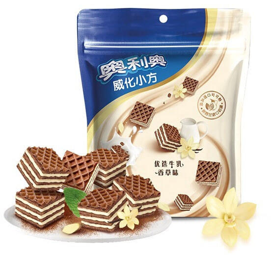 Oreo tejes-vaníliás ostya falatok. töltőtömeg: 42g Összetevők: búzaliszt, étkezési növényi olaj, csokoládé (kakaóvaj, étkezési növényi olaj, cukor, finomra tört rizspor, laktóz, tejpor, maltodextrin, foszfolipid), teljes tejpor, maltodextrin, cukor, laktóz, keményítő, kakaópor, tejpor , só, foszfolipid, térfogatnövelő szerek (E500ii, E503ii), étkezési hidrogénezett