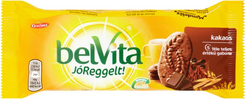 Győri Jó reggelt kakaós keksz 50g Hivatalos magyarországi forgalmazótól. Leírás: Különleges recept alapján készül, kizárólag természetes összetevőket tartalmaz. A Belvita Jóreggelt egy olyan reggelizőkeksz, amely bizonyítottan 4 órán át lassan felszívódó szénhidrátokkal látja el a szervezetet. - gabonában gazdag - rostforrás - Vitaminok: B1, E - teljes értékű gab