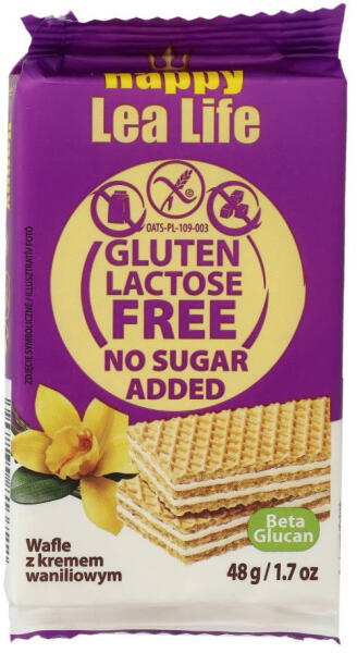 Lea Life vaníliakrémmel töltött ostya. Ropogós ostyalapok. Édesség hozzáadott cukor nélkül. Laktózmentes. Egészséges nasi, boldog pocak!