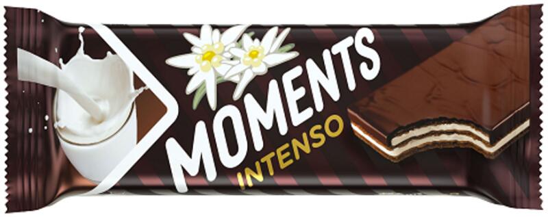 Moments intenso tejes szelet 40g Hivatalos magyarországi forgalmazótól. Leírás: Tejes krémmel (70%) töltött kakaós ostyaszelet kakaós bevonómasszában. Összetevők: Növényi zsírok (pálmazsír, kókuszzsír), BÚZALISZT, Teljes TEJPOR 18%, Cukor, Kakaós bevonómassza 15% (cukor, növényi zsírok (pálmazsír, sheavaj), zsírszegény kakaópor 17%, étkezési SAVÓPOR, emulgeálós