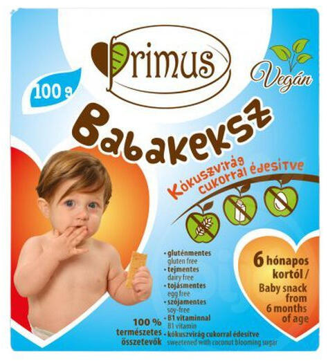 100 g-os vegán babakeksz; Primus termék az egészséges élelmiszerek kedvelőinek.
