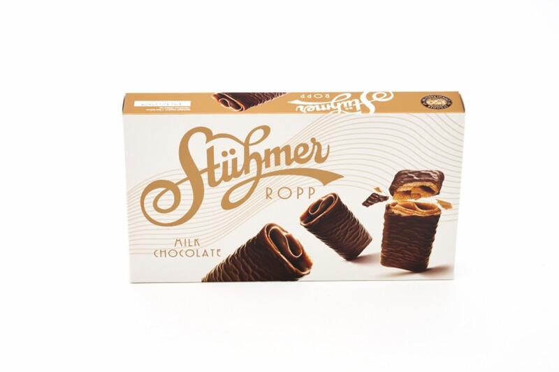 Stühmer ropp tejcsokoládéval mártott ostya 90g Hivatalos magyarországi forgalmazótól. Leírás: Tejcsokoládéval mártott ropogós ostya Összetevők: tejcsokoládé 43% (cukor, kakaóvaj, teljes tejpor, kakaómassza, tejcukor, emulgeálószer: lecitinek (szója), természetes vanília aroma), búzaliszt, cukor, koncentrált vaj (tej) 5%, tejcukor és tejfehérje, só, árpa maláta kivona