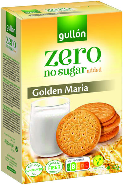 Gullón golden maria zero keksz hozzáadott cukor nélkül 400 g Golden Maria Zero keksz, hozzáadott cukor nélkül, édesítőszerrel. Összetétel: Búzaliszt (61%), édesítőszer (maltitol), növényi olaj: magas olajsavtartalmú napraforgó olaj (15%), növényi rost, sovány tejpor (2%), térfogatnövelő szer (nátrium és ammónium-hidrogén-karbonátok), só, emulgeálószer: szójalecit