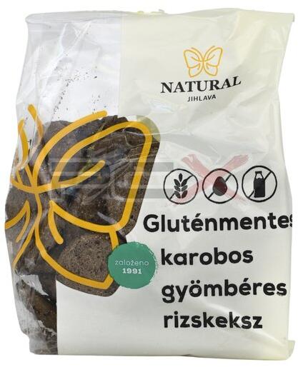 Közvetlen fogyasztásra alkalmas gluténmentes karobos rizskeksz gyömbér ízesítéssel. Összetevők: , tápióka keményítő, alma püré, cirokliszt, rizsliszt, sűrítő anyag (guar gumi), rizsszirup 29%, kókuszolaj, karob por 3%, foszfátmentes sütőpor, gyömbér, aroma Allergének:, gluténmentes, laktózmentes, tojásmentes, hozzáadott cukormentesÁtlagos tápérték 100g termékben