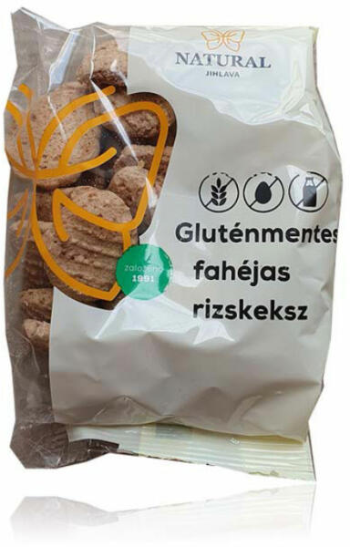 Közvetlen fogyasztásra alkalmas gluténmentes fahéjas rizskeksz. (gluténmentes, tejmentes, tojásmentes, hozzáadott cukormentes) Kellemes fahéj ízű glutén-és cukormentes keksz.