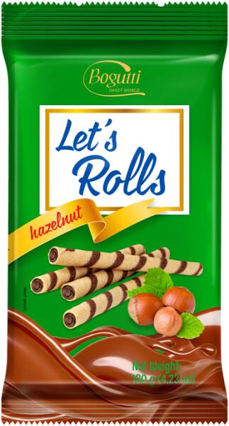 Bogutti Lets Rolls mogyoró ízű krémmel töltött ostyarúd 120g Hivatalos magyarországi forgalmazótól. Leírás: Mogyoró ízű krémmel töltött ostyarúd Kiszerelés: 120g
