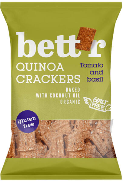 Bettr bio vegán gluténmentes quinoa kréker bazsalikom¶dicsom 100 g Próbáld ki most a gluténmentes összetevőkből, hagyományos módon készült ropogós krékert izgalmas fűszerekkel megbolondítva. Glutén-, laktóz-, tej-, tojás-, szója-, cukor-, mentes és vegán. Összetevők: gluténmentes zabliszt*, víz, quinoa liszt*(22%), szezámmag*(12%), illatmentes kókuszolaj*(9%),