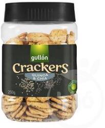 Gullón Crackers chia magos Quinoas 250 g. Összetevők: Búzaliszt 17%, nagy olajsavtartalmú napraforgó étolaj, Oligofruktóz, Cukor, 2,5% só Maláta szirup ( árpa, búza ), 3,5% chia mag (Salvia hispanica) 3,5% lenmag, quinoa mag, Térfogatnövelő szer (nátrium- és ammónium hidrogén-karbonát), Fokhagyma por Szárított oregáno, Antioxidáns (nátrium metabiszulfit és tokoferolban ga
